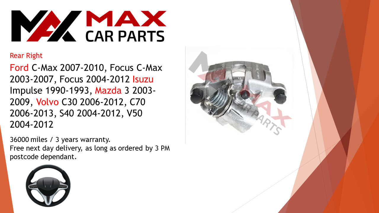 Fits Ford C-Max Focus Mazda 3 Volvo C30 C70 S40 V50 Brake Caliper Rear Right